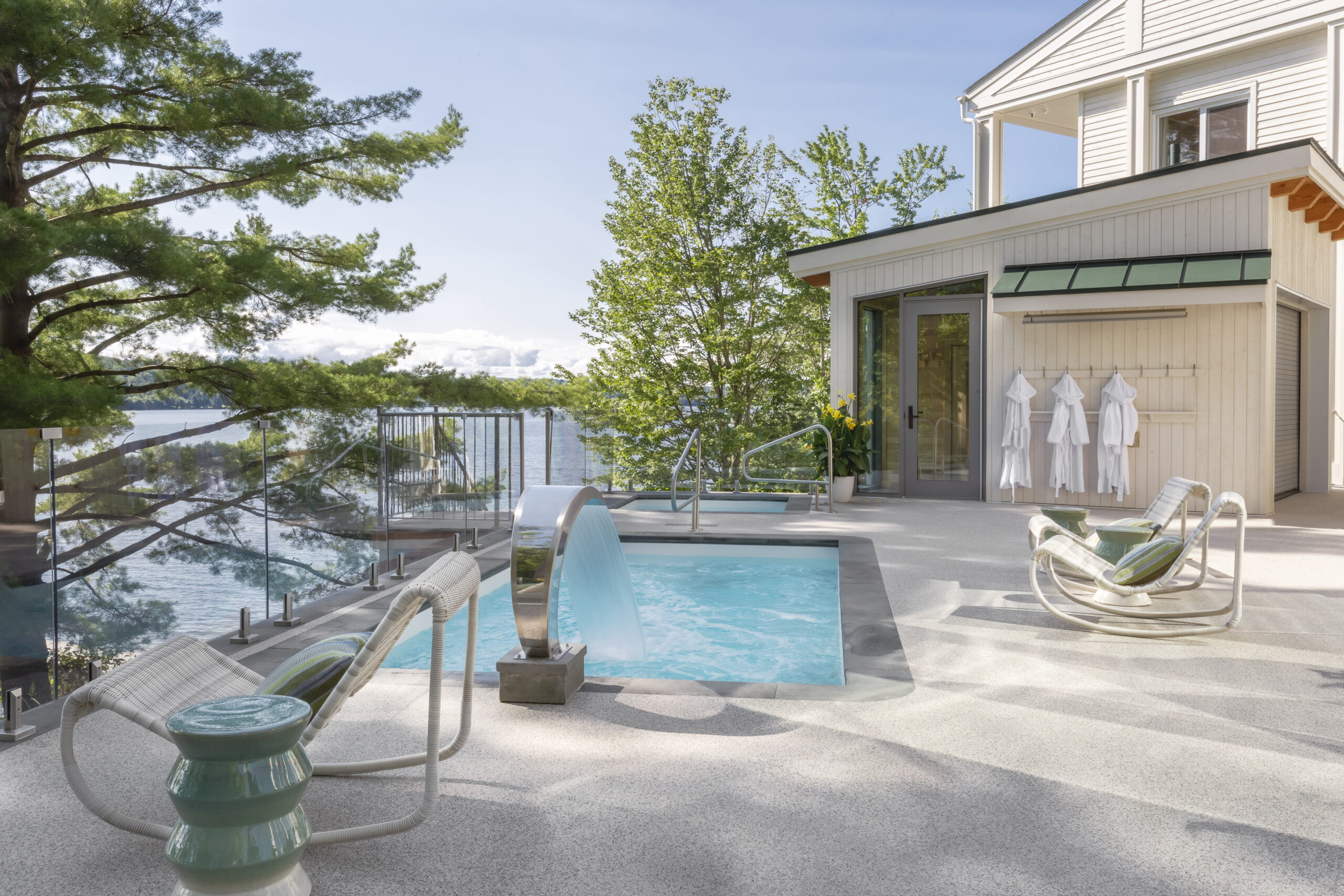 Nestled between earth, water, and sky, our lakeside spa invites you to reconnect with the natural world in its purest form. Towering pines whisper over Lake Massawippi’s shimmering expanse, setting the scene for an indoor-outdoor thermal experience thoughtfully designed for deep serenity. Here, nature is not a backdrop but a partner in healing. Move through a ritual of warmth and stillness, where thermal therapy, quiet contemplation, and soul-restoring treatments converge into a holistic wellness journey – one that calms the mind, invigorates the body, and awakens the spirit.